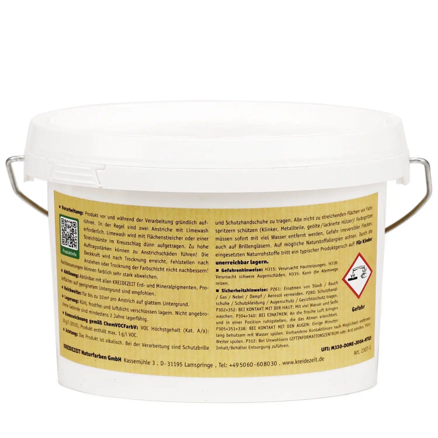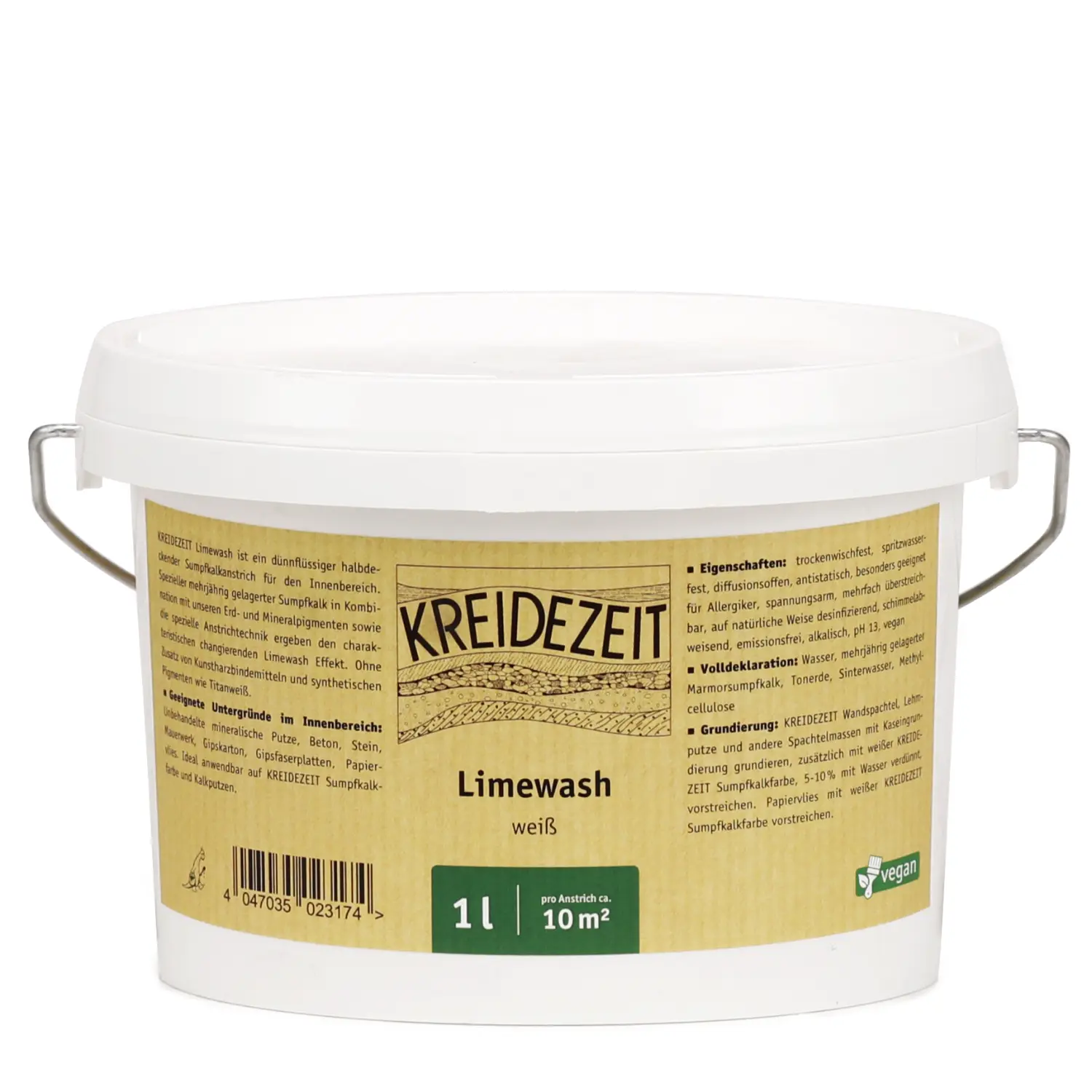 KREIDEZEIT Limewash ist eine hochwertige, halbdeckende Kalkfarbe auf Basis von traditionell hergestelltem Sumpfkalk für den Innenbereich. Der feine, dünnflüssige Kalkanstrich erzeugt durch seine spezielle Verarbeitungstechnik einen charakteristischen Limewash-Effekt mit changierender Oberfläche – lebendig, authentisch und voller Tiefe.